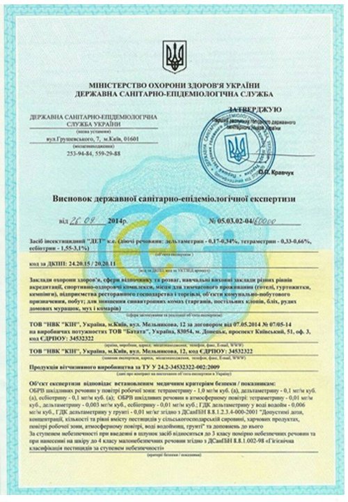 Використовуємо тільки сертифіковані препарати, які при дотриманні техніки безпеки, не шкідливі людям і тваринам, а ось шкідникам не залишають жодного шансу.
